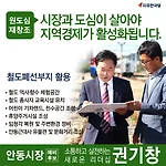 안동시장 경선후보 권기창 !원도심 재창조! 시장과 도심이 살아야 지역경제가 활성화됩니다. 1. 철도폐선부지 활용 - 철도 역사. 향수 체험공간 - 철도 종사자 교육시설 유치 - 어린이 기차랜드, 친수공간 조성 - 휴양주거시설 조성 - 임청각 복원 및 주변환경 정비 - 안동근대사 유물관 및 문화거리 조성 2. 70사단 부지활용 - 안보교육 및 병영체험 공간조성 - 친환경 신소재 산업지원센터 설립 - 재난. 재해 안전 체험센터 설립 3. 전통시장 및 원도심 활성화 - 구시장. 신시장 빈상가를 활용한 집객시설 조성 - 안동근대시장 거리 재현. 음식물. 공예 특화거리 조성 4. 주차공간 조성 - 전통시장 주택가 주변 주차공간 확대 - 신규 건축 허가시 충분한 주차공간 확보 의무화 - 전통시장 주변 주차장 진입도..